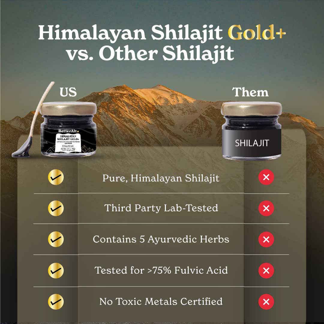Shilajit Resin is the pure, natural form best for daily energy and overall wellness, while Gold+ Shilajit is an enhanced version infused with Ayurvedic herbs to support strength, stamina, and stress balance. Cordyceps Shilajit goes a step further by combining Shilajit with cordyceps to boost energy, endurance, and performance. In short, Resin is the base, Gold+ is the upgrade, and Cordyceps is the high-performance blend.